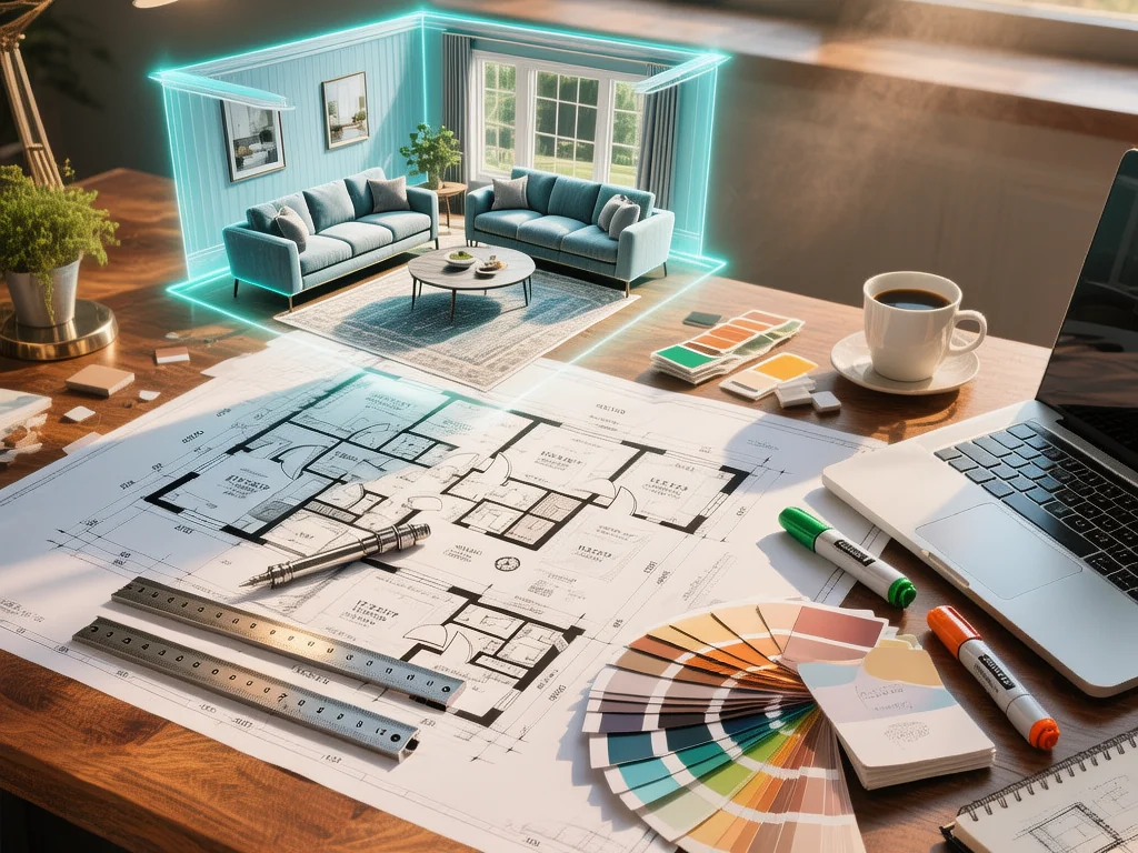 Explore paint colors, flooring options, and material combinations without physical samples.